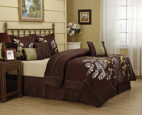 This beautiful bedding set features stems of silver and green foilage on brown ground A refreshing design for any bedroom3 decorative pillows included FeaturesColor BrownGreenSilverSize California KingMachine washable Matching curtains availableThis set includes1 Comforter 104x922 Sh